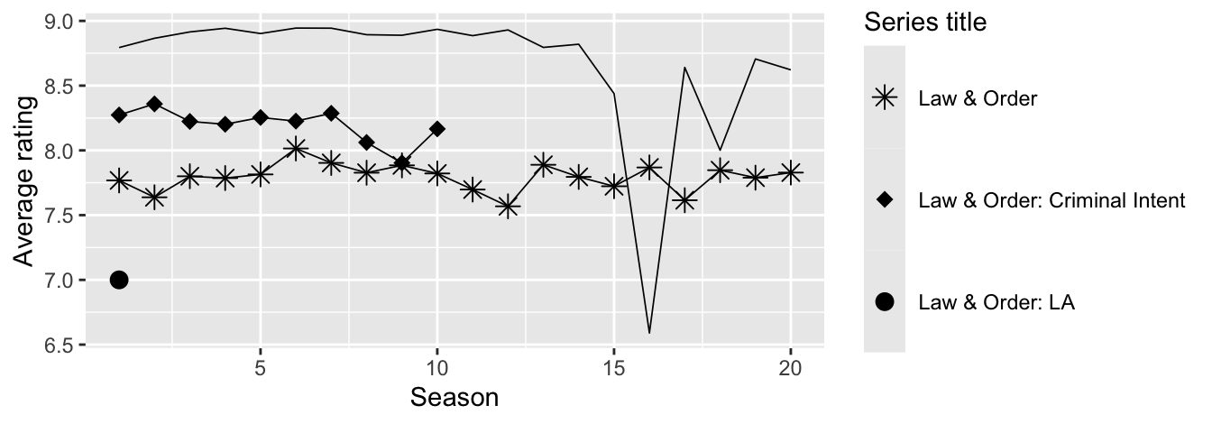 Figure 1 - A shared x-axis makes it easier to compare summary statistics for the variable on the x-axis.