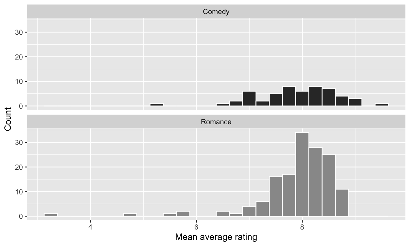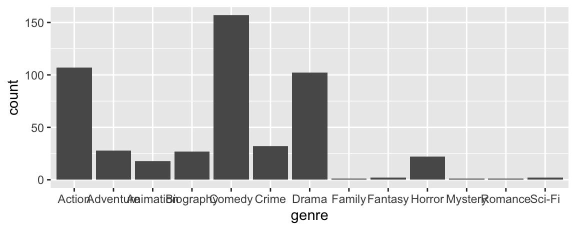 Suppose you want a visualization that shows the number of movies in the sample in each genre
