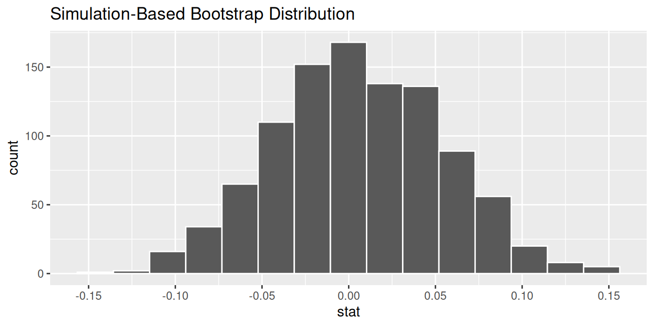 The bootstrap distribution of a sample proportion, \(\hat{p}\), will be centered at \(\hat{p}\).