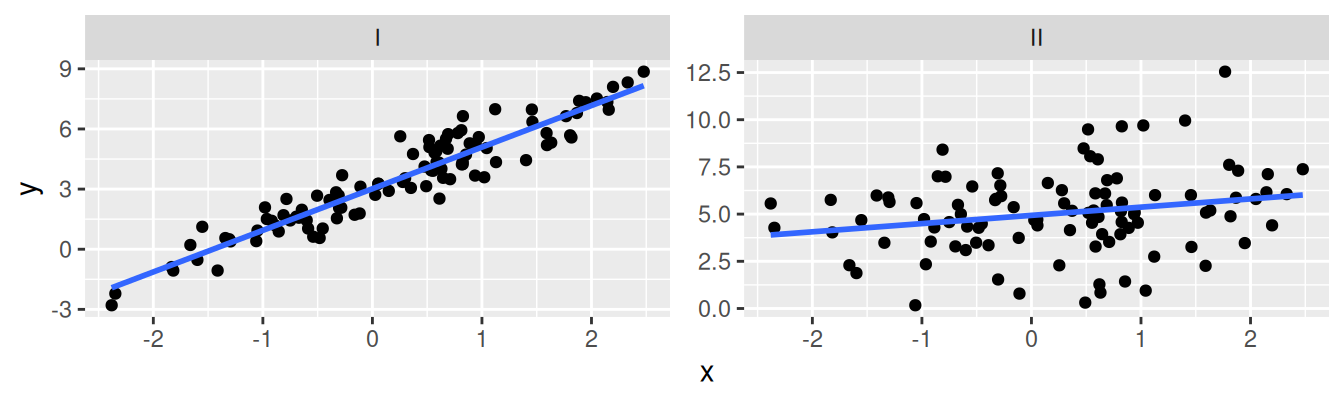 Which of the following is true about the models below? Note that both models are fit to equally sized datasets (n = 100).