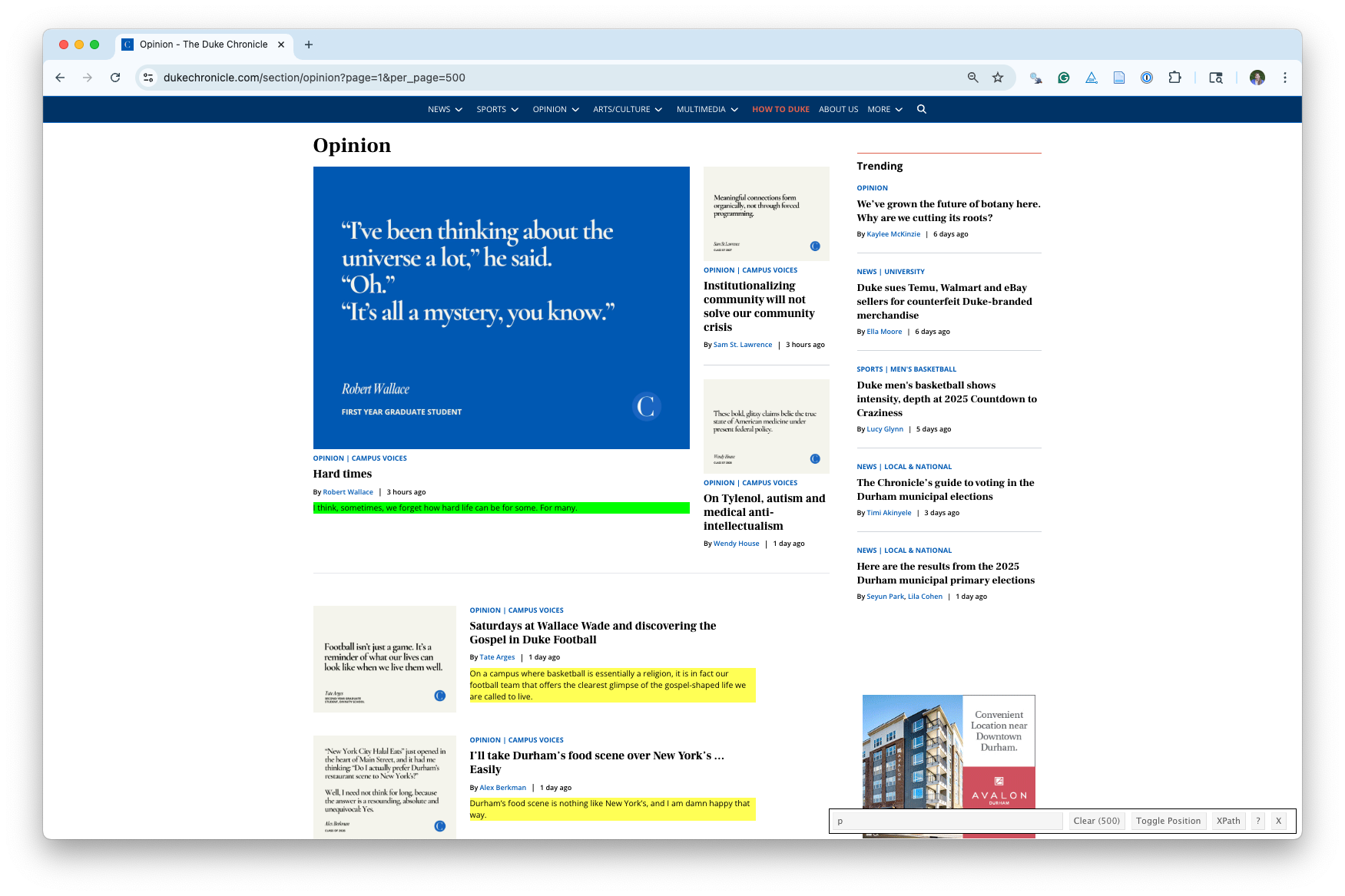 Go to https://www2.stat.duke.edu/~cr173/data/dukechronicle-opinion/www.dukechronicle.com/section/opinionabc4.html (copy of The Chronicle opinion section as of October 7, 2025).