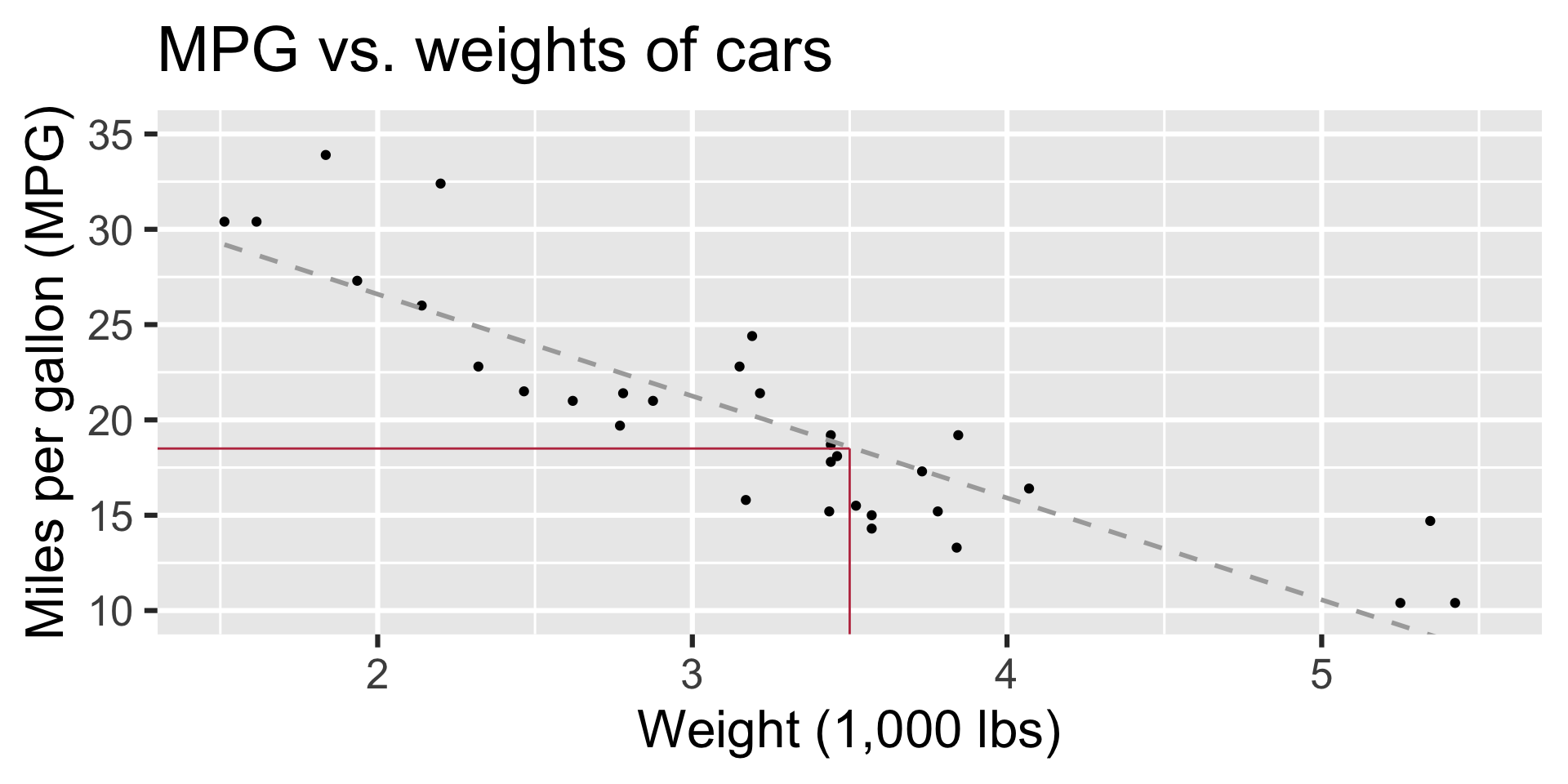 - What is your best guess for a car’s MPG that weighs 3,500 pounds?
